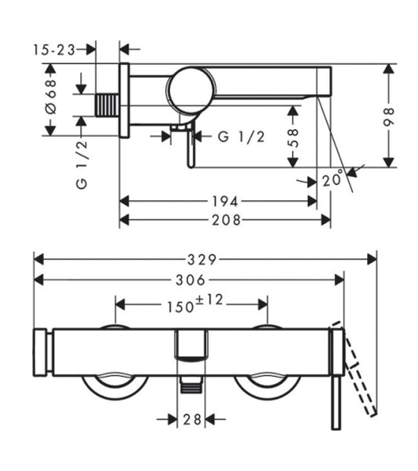 Смеситель для ванны Finoris, однорычажный, внешнего монтажа
