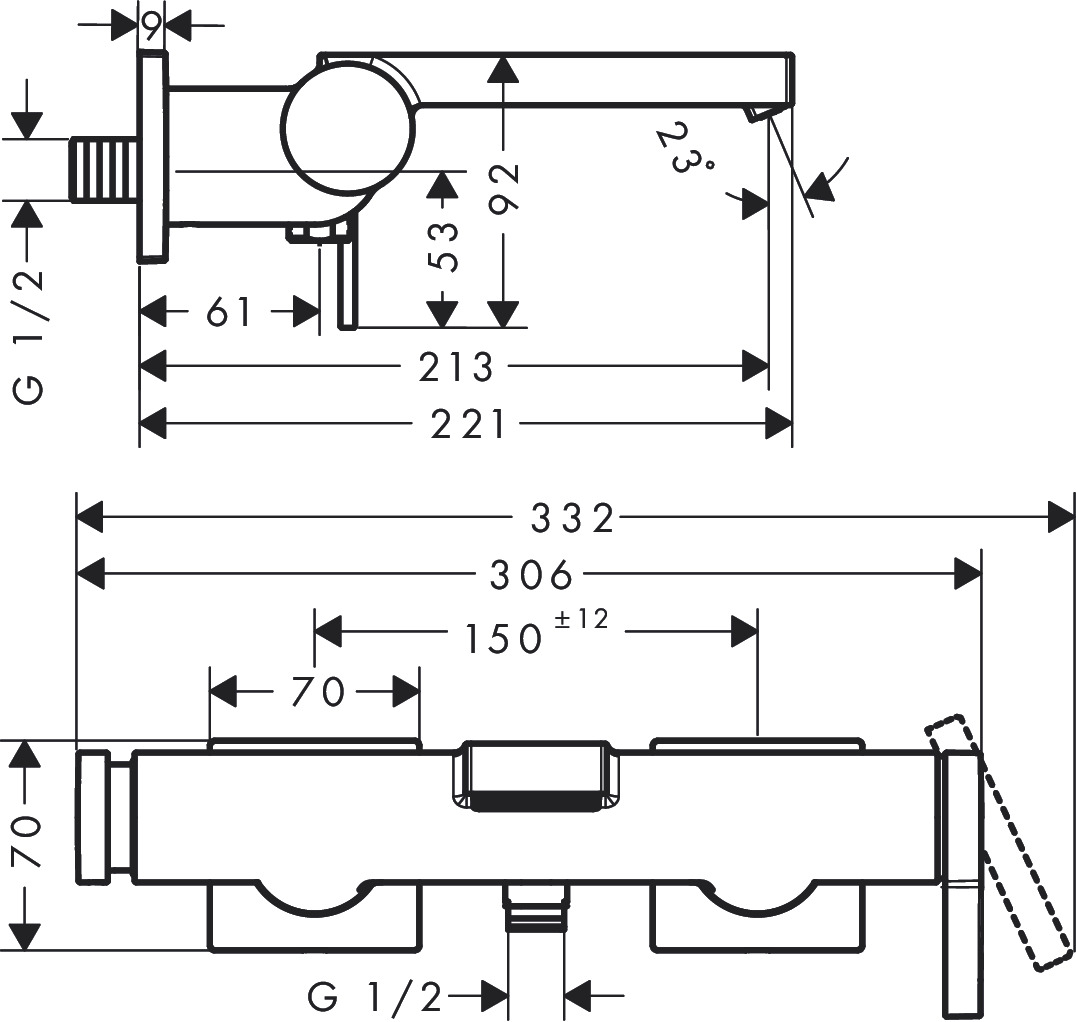 Смеситель для ванны Tecturis E, однорычажный, наружнего монтажа