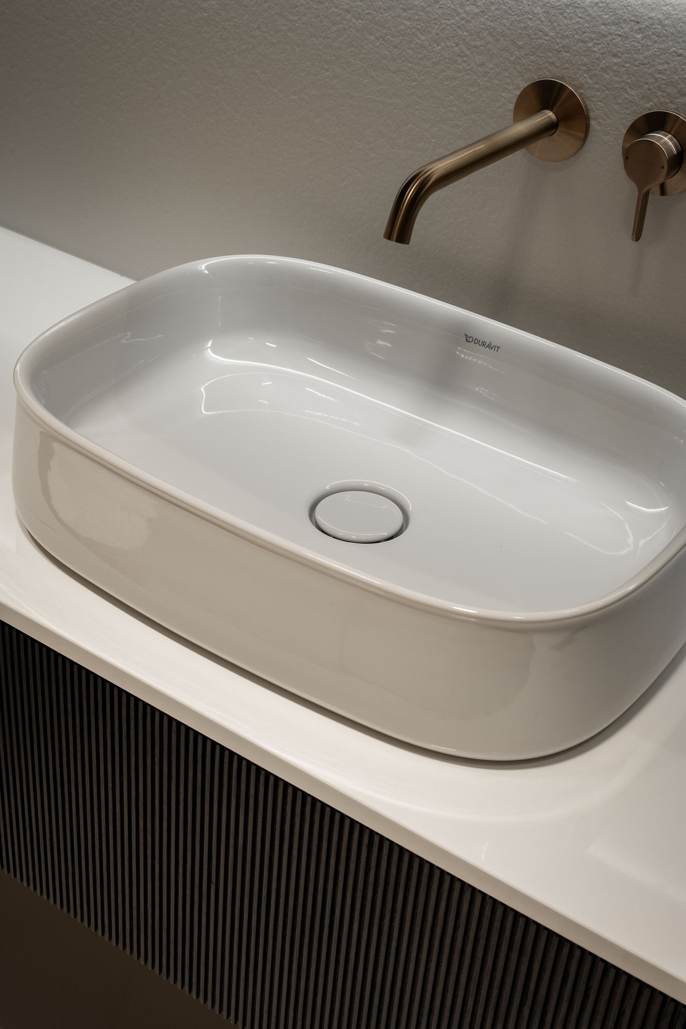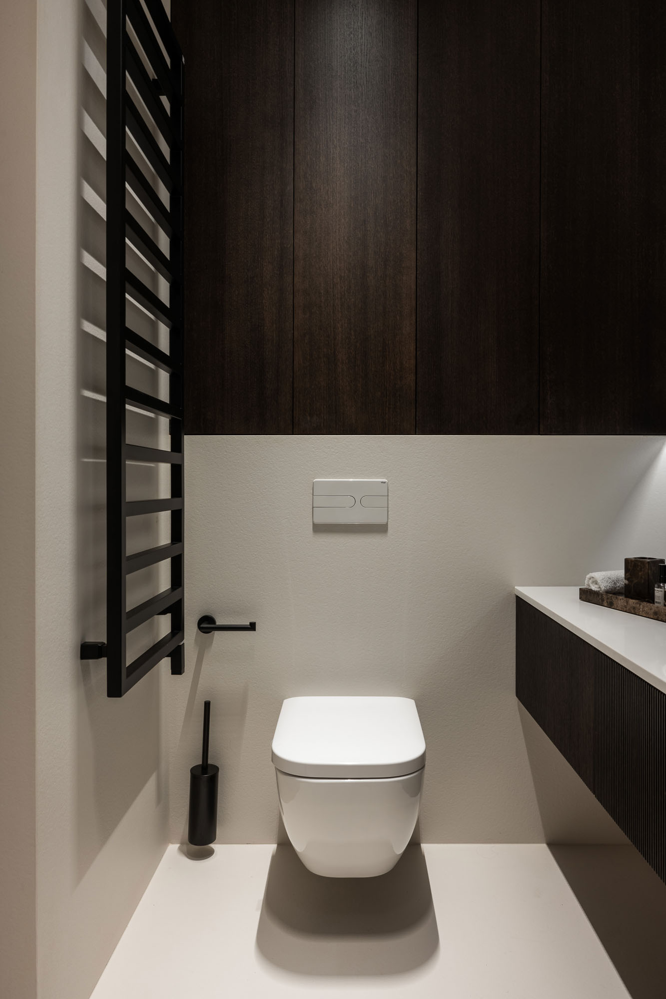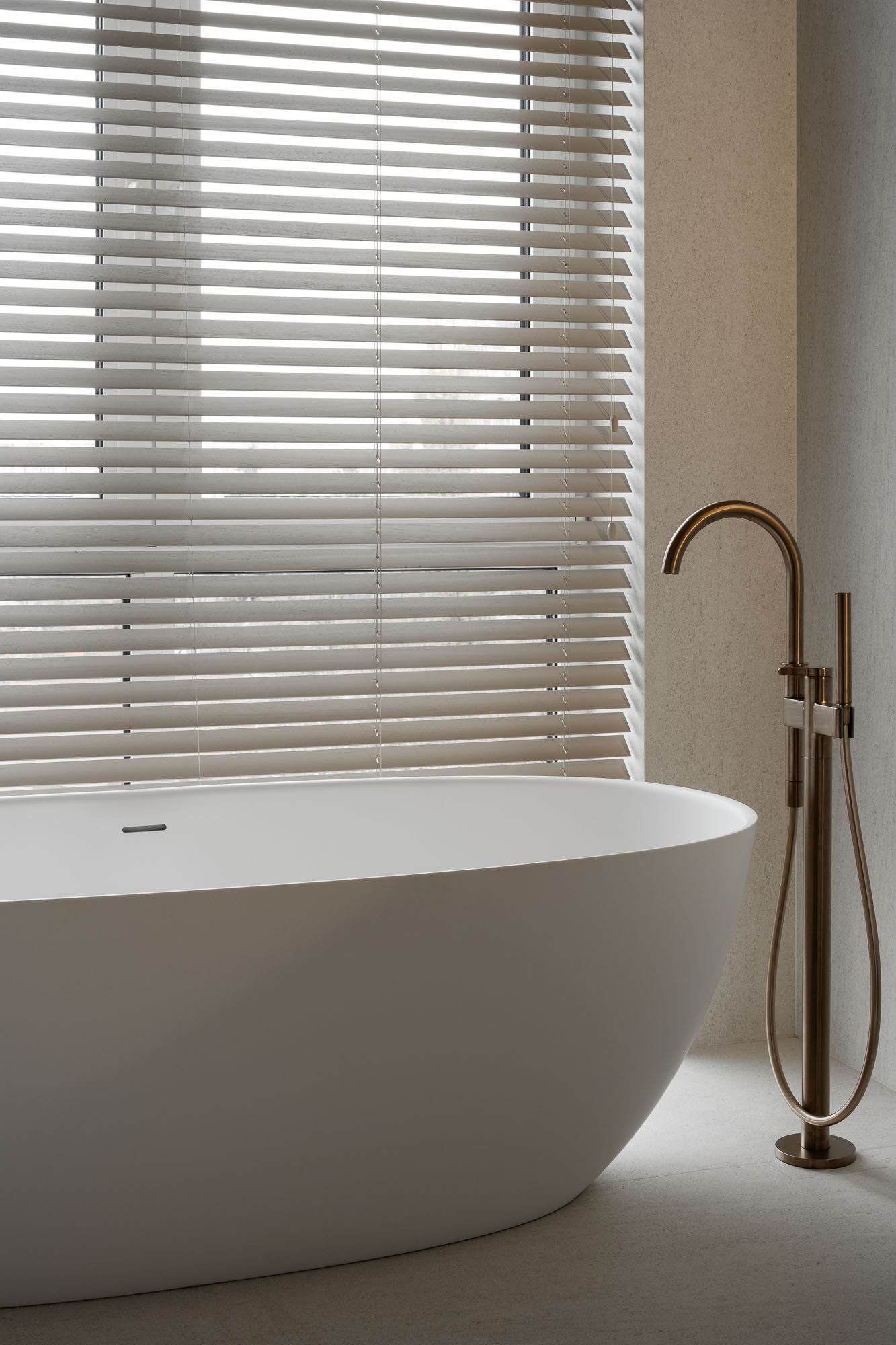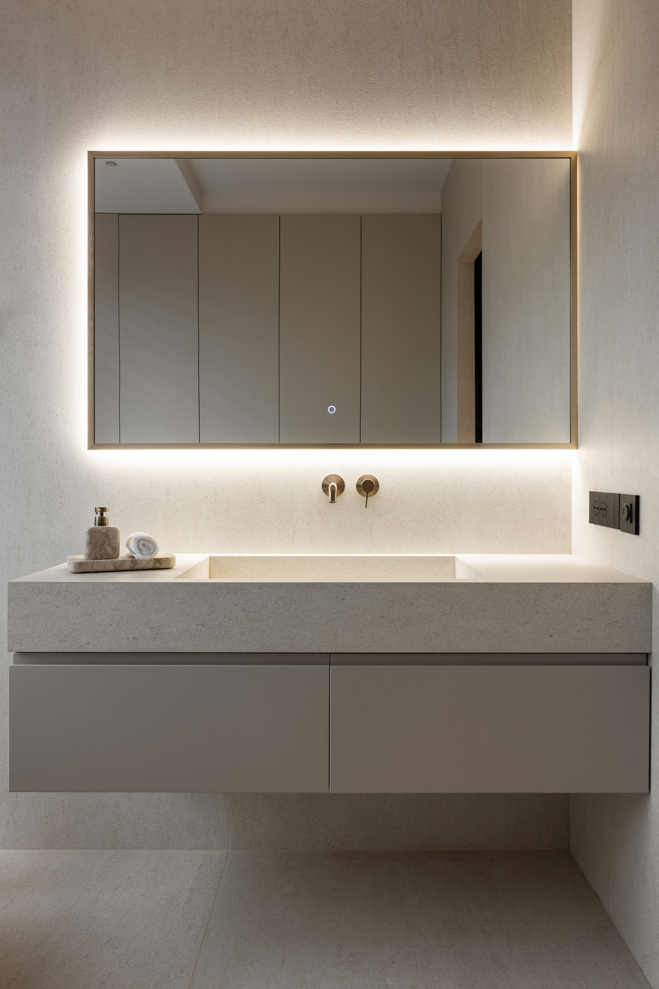 В ванных комнатах использованы поверхности INALCO MDi — Atalaia, Jasper и Silk Blanco,
